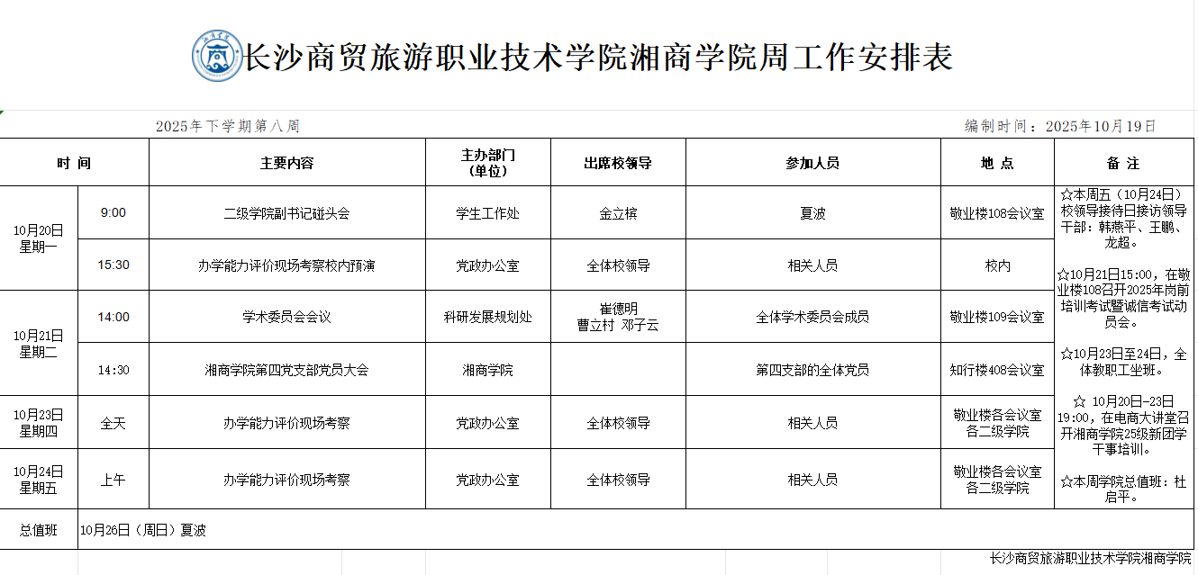 2025年下学期第8周工作安排表
