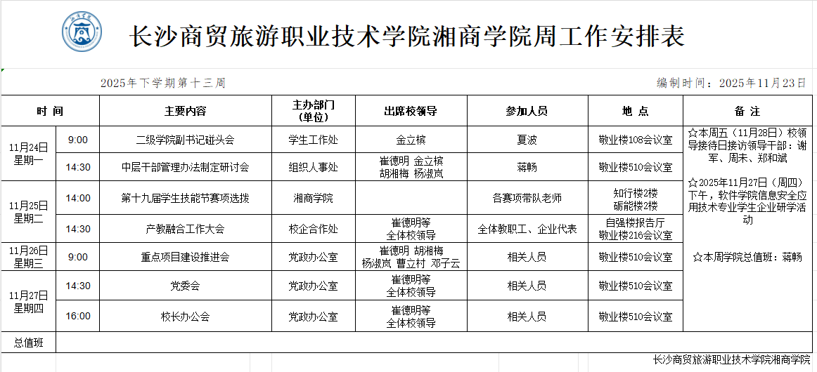 2025年下学期第13周工作安排表