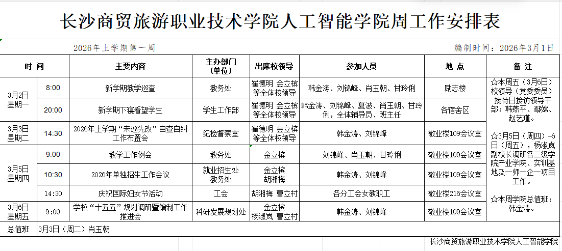 2026年上学期第1周工作安排表