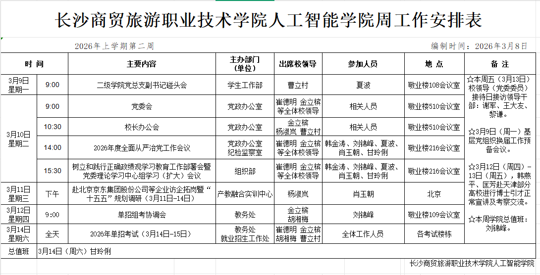 2026年上学期第2周工作安排表